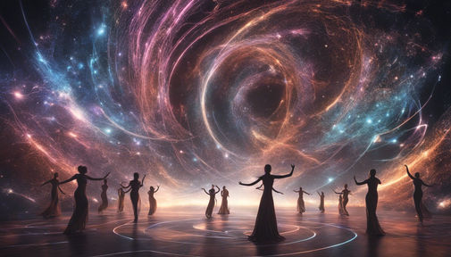 A coleção "Cosmic Dance of Dimensions" celebra a interseção mágica da dança e da cosmologia, onde cada movimento ressoa com o pulso do universo. Combinando estética surrealista e física celeste, as obras são um tributo à dança eterna das energias cósmicas.